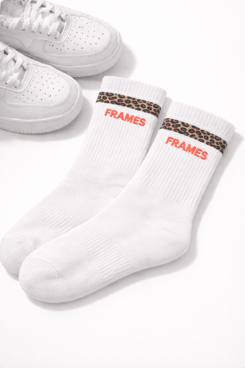 Abgerundet wird das Design durch den FRAMES Schriftzug und das exklusiv designte Leo-Detail am Schaft. Das Jacquard-Design ist eingestrickt statt gedruckt und wirkt dadurch hochwertig, sauber und langlebig. Ein Essential für alle, die Komfort, Qualität und besondere Details in einem Look verbinden möchten.